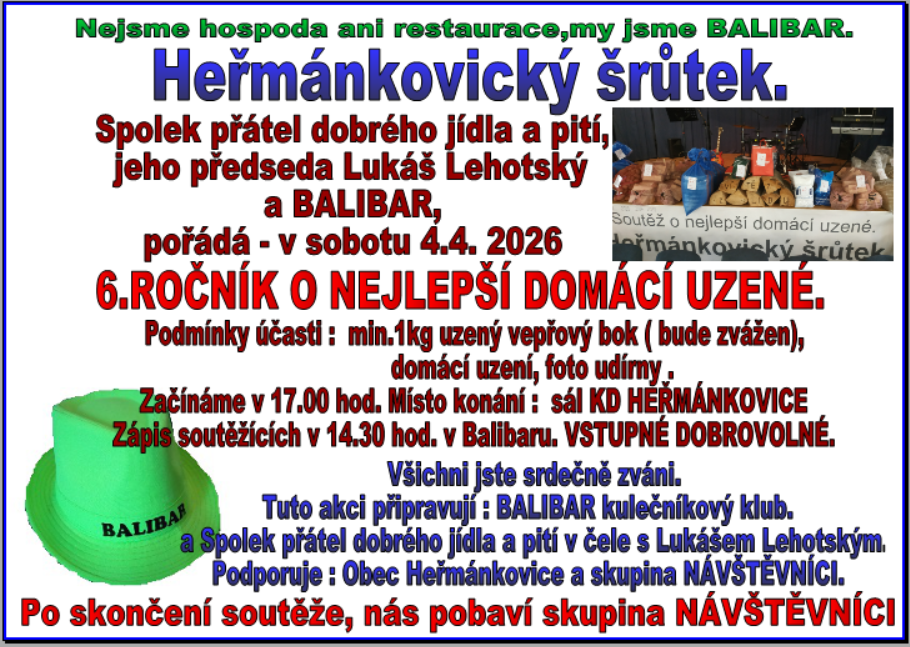 Vážení soutěžící, sejdeme se 4.4.2026 v Balibaru při zápisu a předání vzorků od 14.30 hod. do 15.30.hod.
